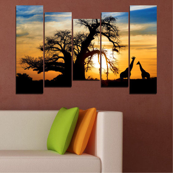 Създайте неповторима атмосфера, съживете интериора във вашия дом или офис чрез декоративните панели за стена или картини - пана от канава от 5 части с избор от 8 различни дизайн конфигурации.