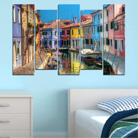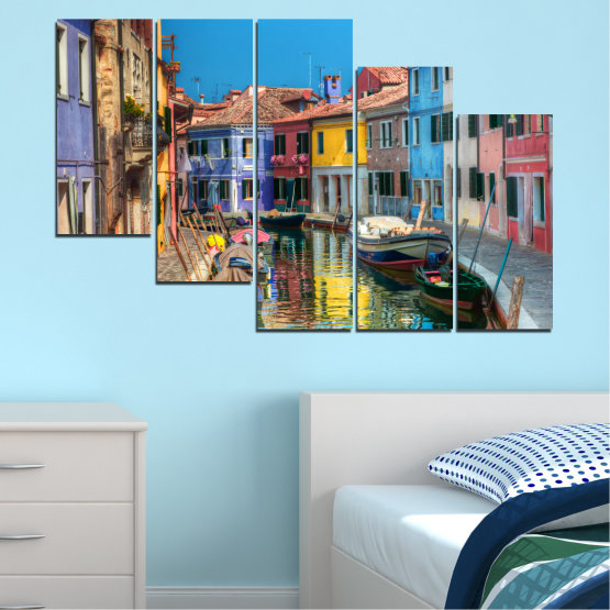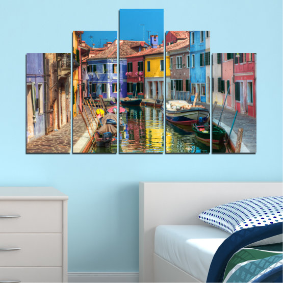 Създайте неповторима атмосфера, съживете интериора във вашия дом или офис чрез декоративните панели за стена или картини - пана от канава от 5 части с избор от 8 различни дизайн конфигурации.