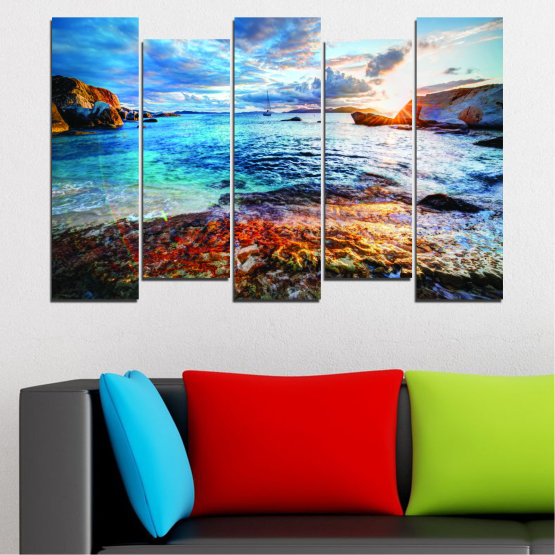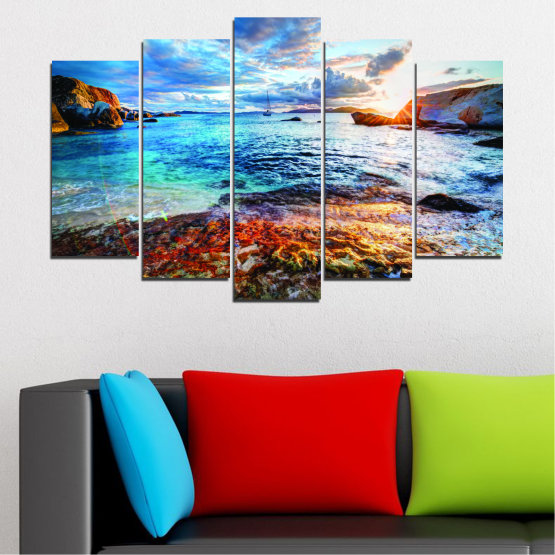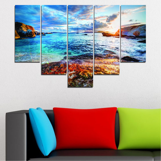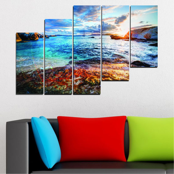 Създайте неповторима атмосфера, съживете интериора във вашия дом или офис чрез декоративните панели за стена или картини - пана от канава от 5 части с избор от 8 различни дизайн конфигурации.